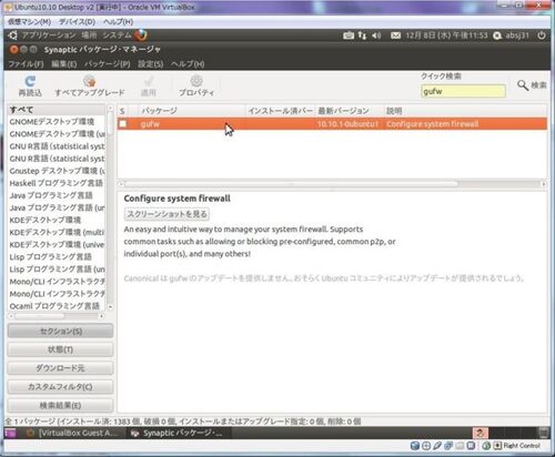 Ubuntuに於いては初期状態でファイアウォール機能が提供されていない模様なので、まずは関連ソフトのインストールから。 [Synapticパッケージ・マネージャ]でクイック検索にて[gufw]と入力。 検索で引っ掛かった要素を右クリック→[インストール指定]を選択。…