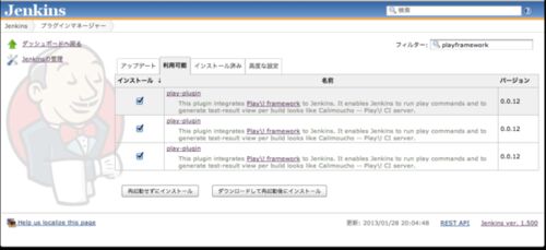 以下のエントリシリーズのうちの1つ:Jenkins環境からPlay! frameworkに関する処理を行うプラグインの導入手順について。 Ubuntu12.04 VPSサーバ構築手順:CI環境構築(Playframework/Mercurial etc.) - Shinya’s Daily Report 基本的には以下の公式プラグイン…